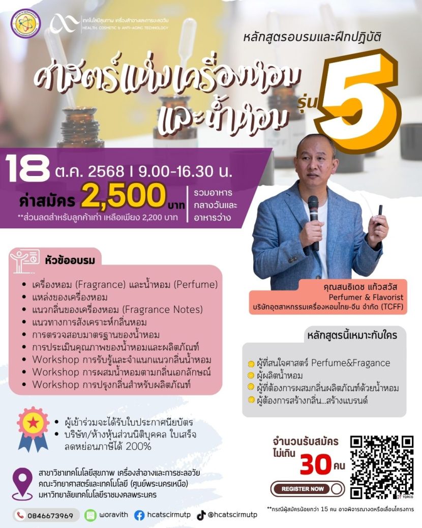 เปิดรับสมัครรุ่นสุดท้ายของปี 2568 กับหลักสูตรอบรมและฝึกปฏิบัติ “ศาสตร์แห่งเครื่องหอมและน้ำหอม (Perfume 101)” รุ่นที่ 5
